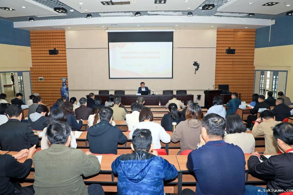 12月5日上午,学校党委书记卢清华在学术交流中心三号报告厅为行政一党总支全体党员宣讲党的二十届四中全会精神。